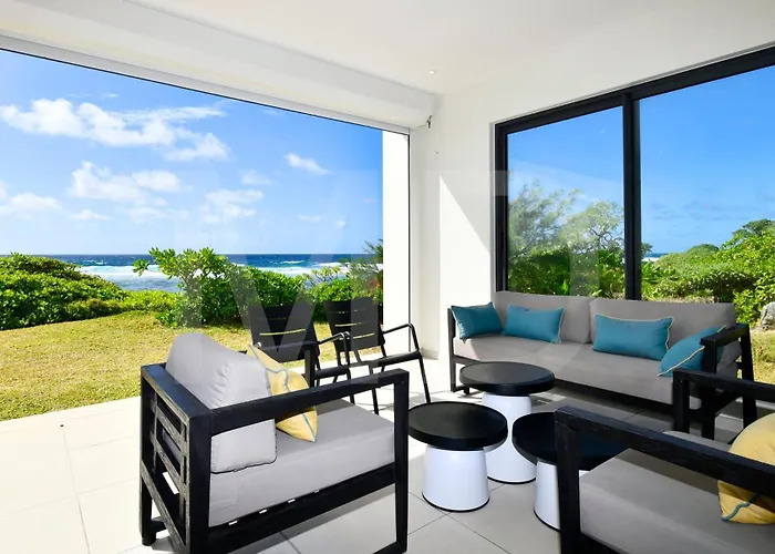 Situada a una distancia de 2 km de las Bras d'Eau Public Beach, White&Blue Beachfront Luxury Poste Lafayette cuenta con un patio soleado con vistas al mar. La villa, que ofrece vistas a la piscina exterior, invita a los huéspedes a visitar el Roche Noire Lava Tubes, situado a 4 km.